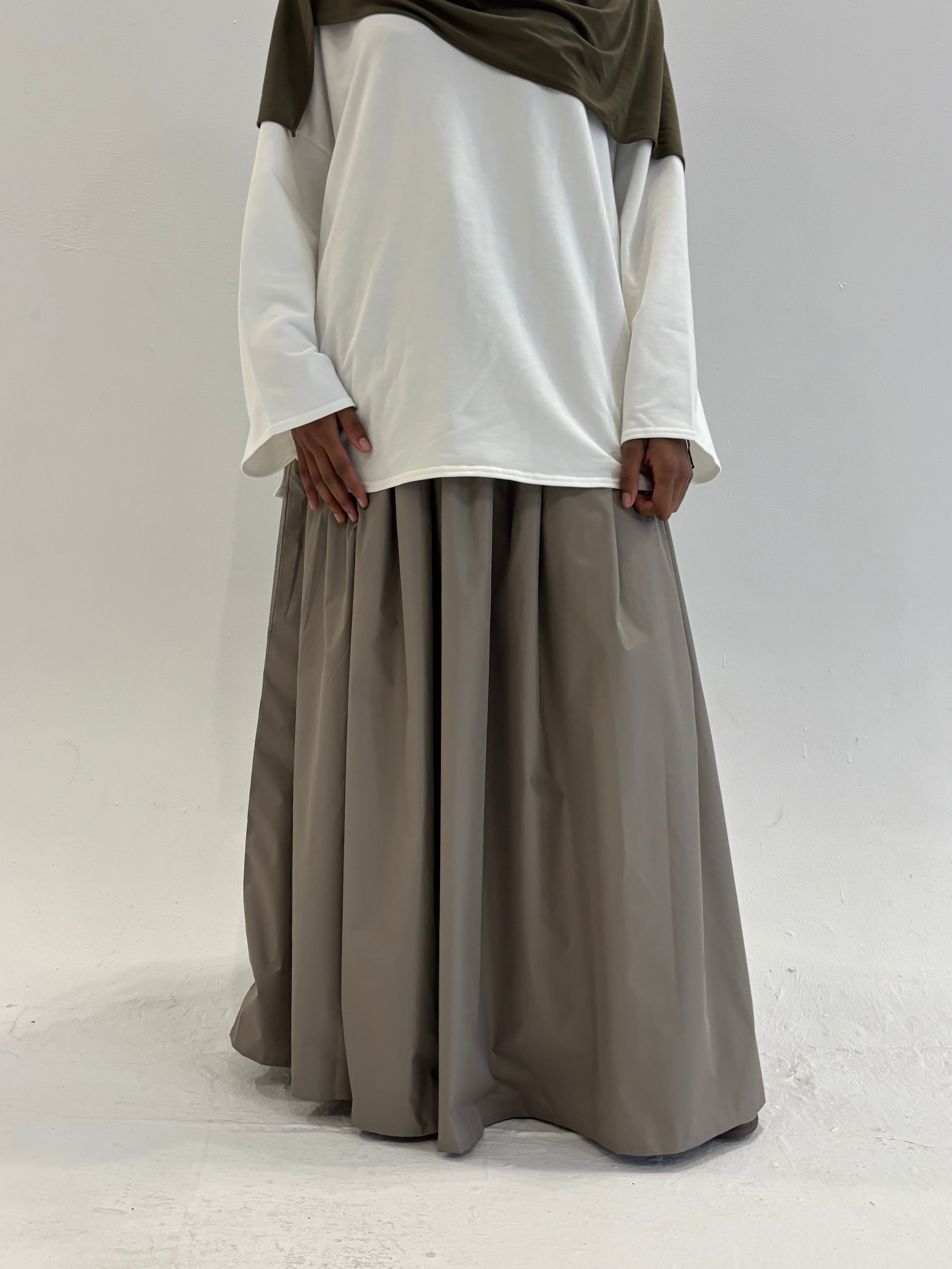 Notre jupe oversize déperlante est pensée pour allier style et praticité. Confectionnée dans une matière déperlante, elle fait glisser les gouttes d’eau et vous protège des petites éclaboussures ou des pluies légères.