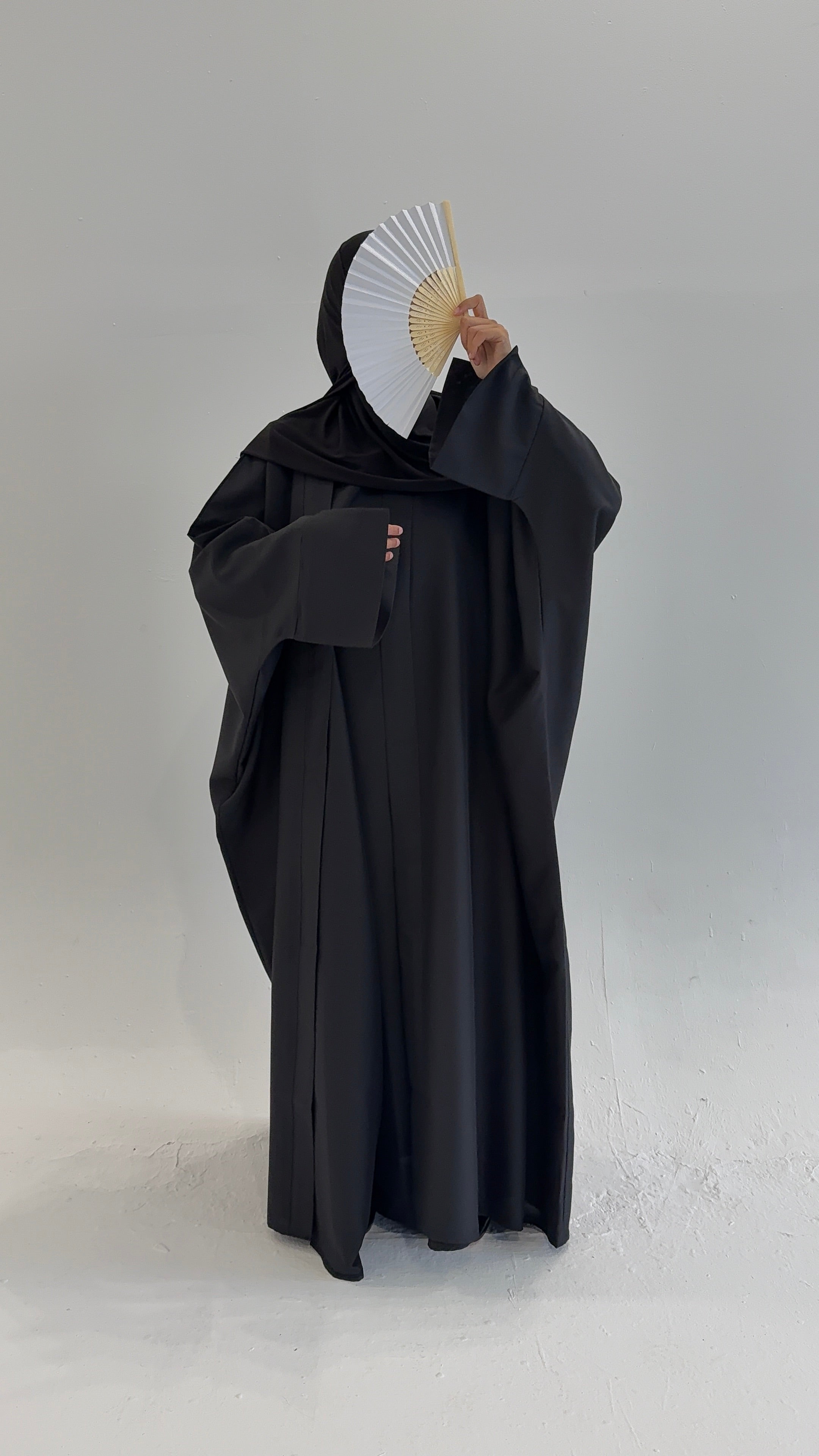 Cet ensemble élégant est composé d’un kimono fluide et d’une robe à manches assortie.
