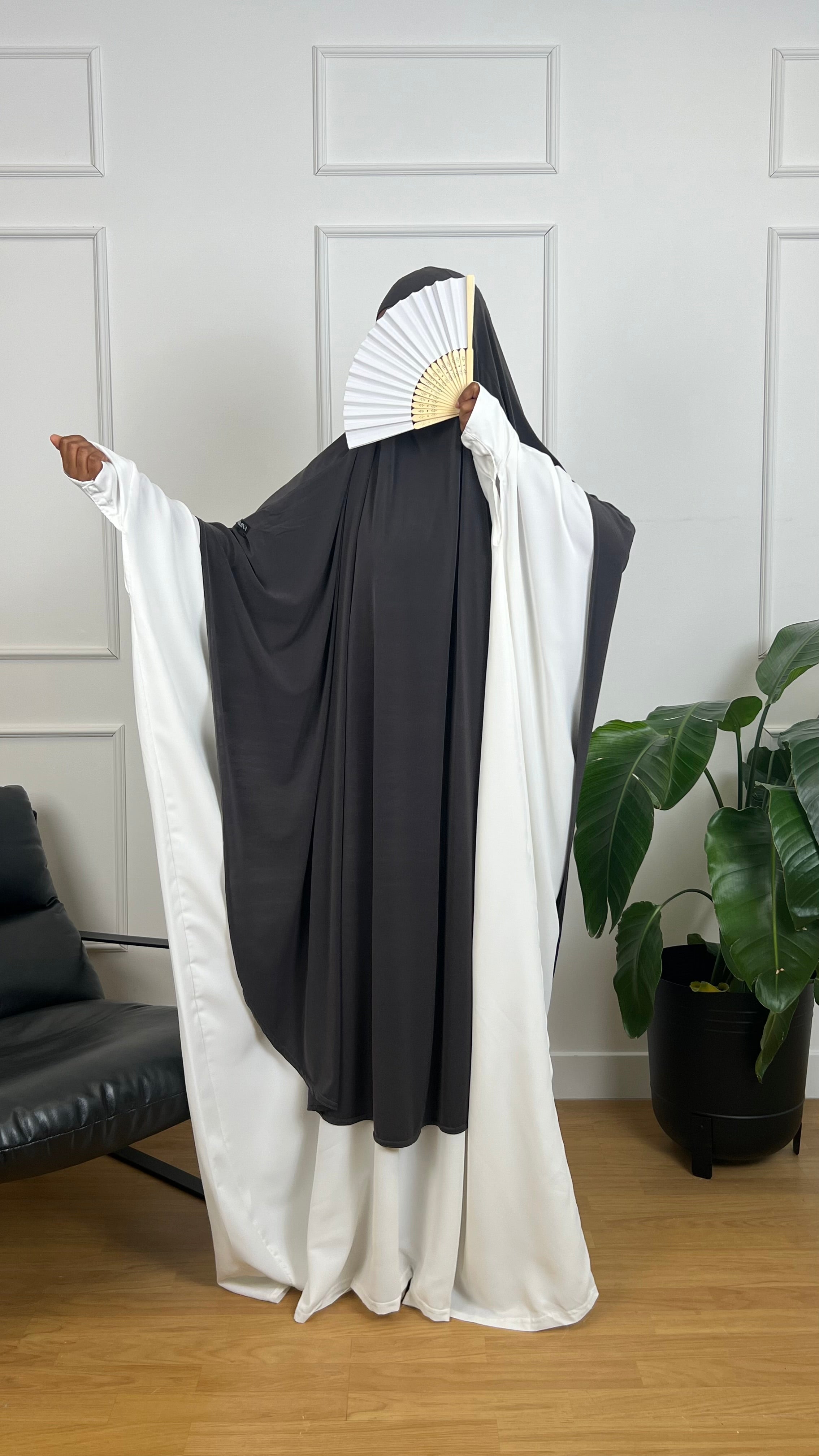 Découvrez notre Khimar en jersey premium d’une longueur de 1m50, spécialement conçu pour allier élégance et confort. Son tissu jersey premium, souple et doux, offre un tombé fluide et raffiné tout en garantissant une grande légèreté.