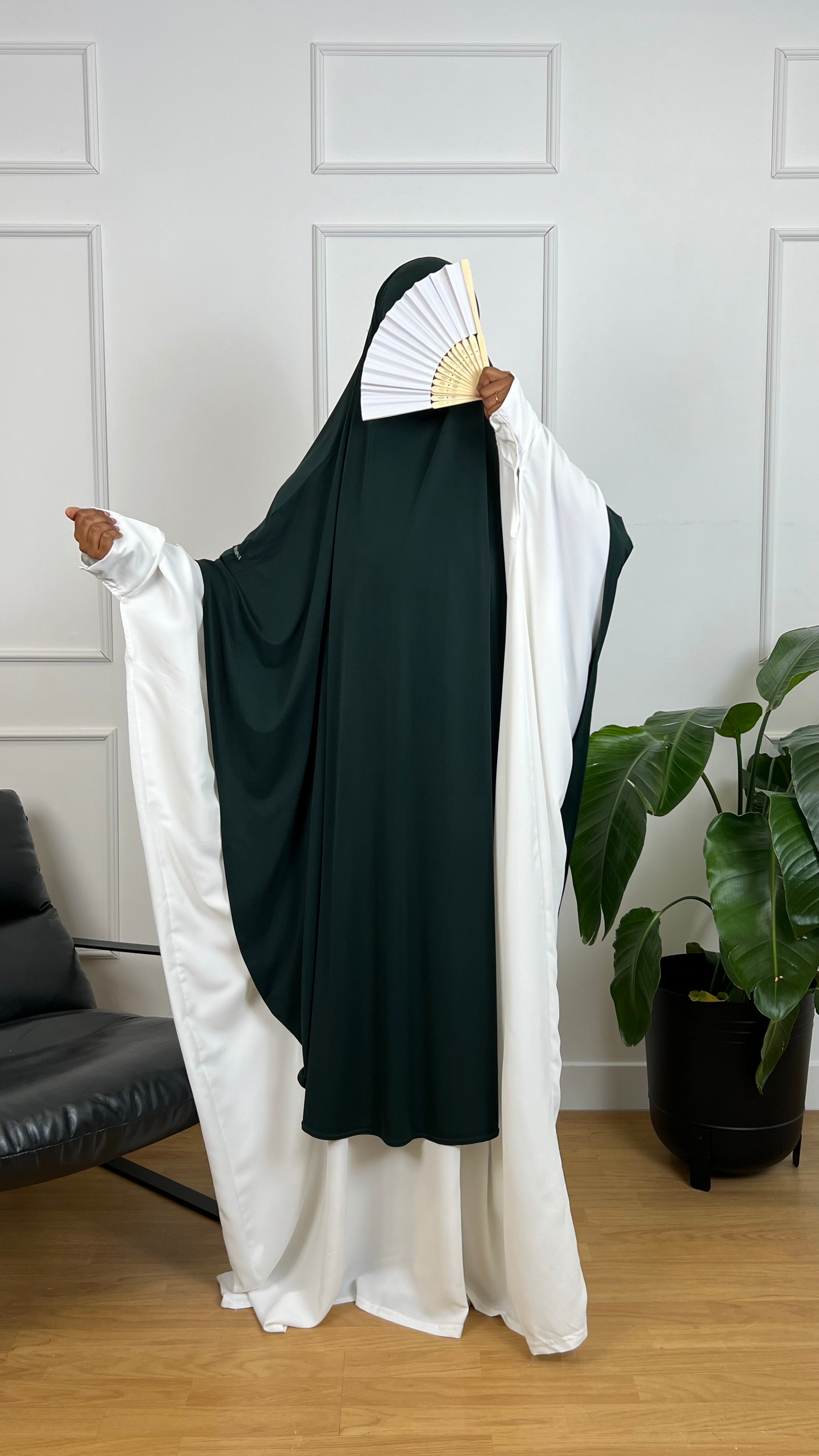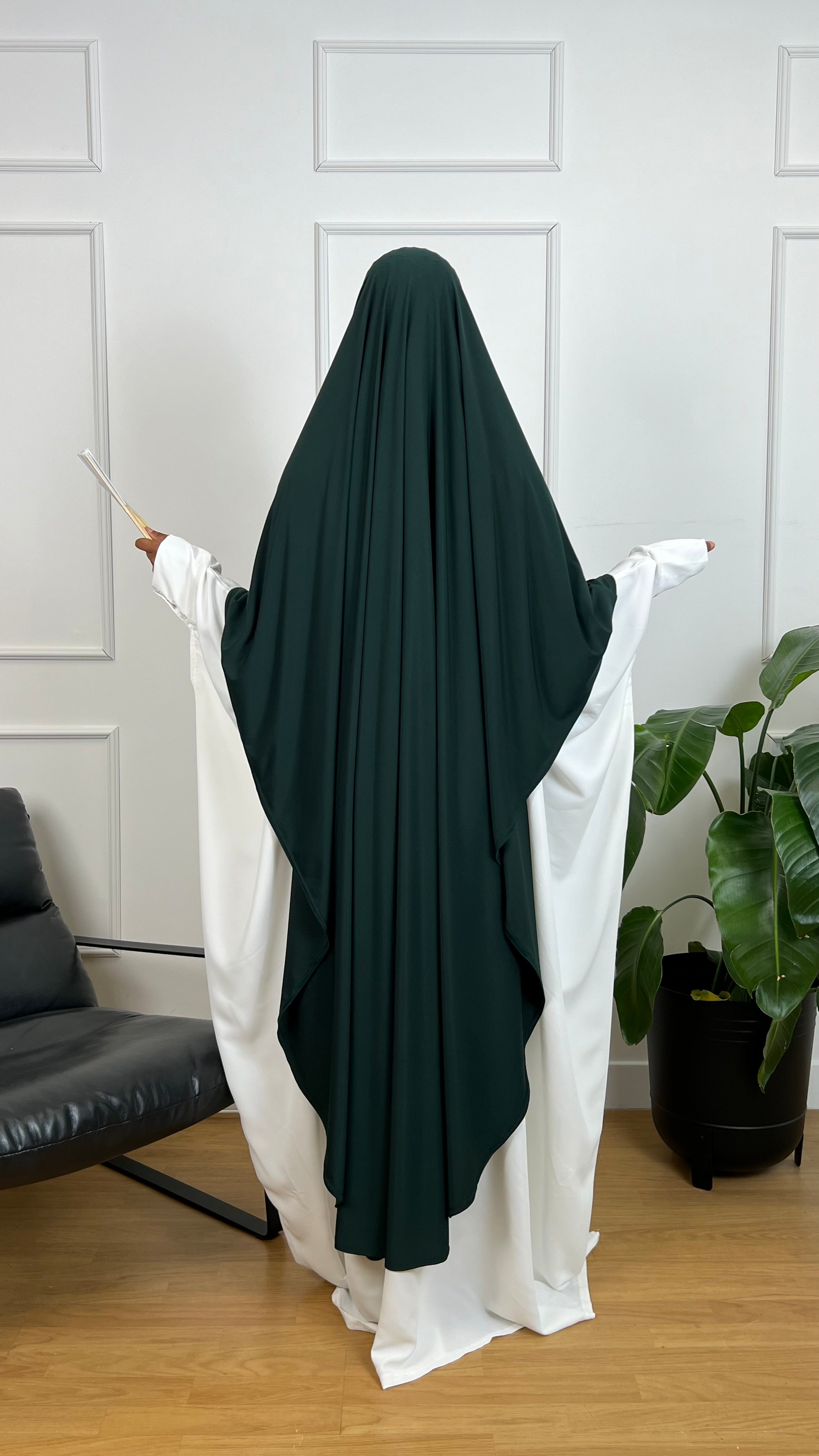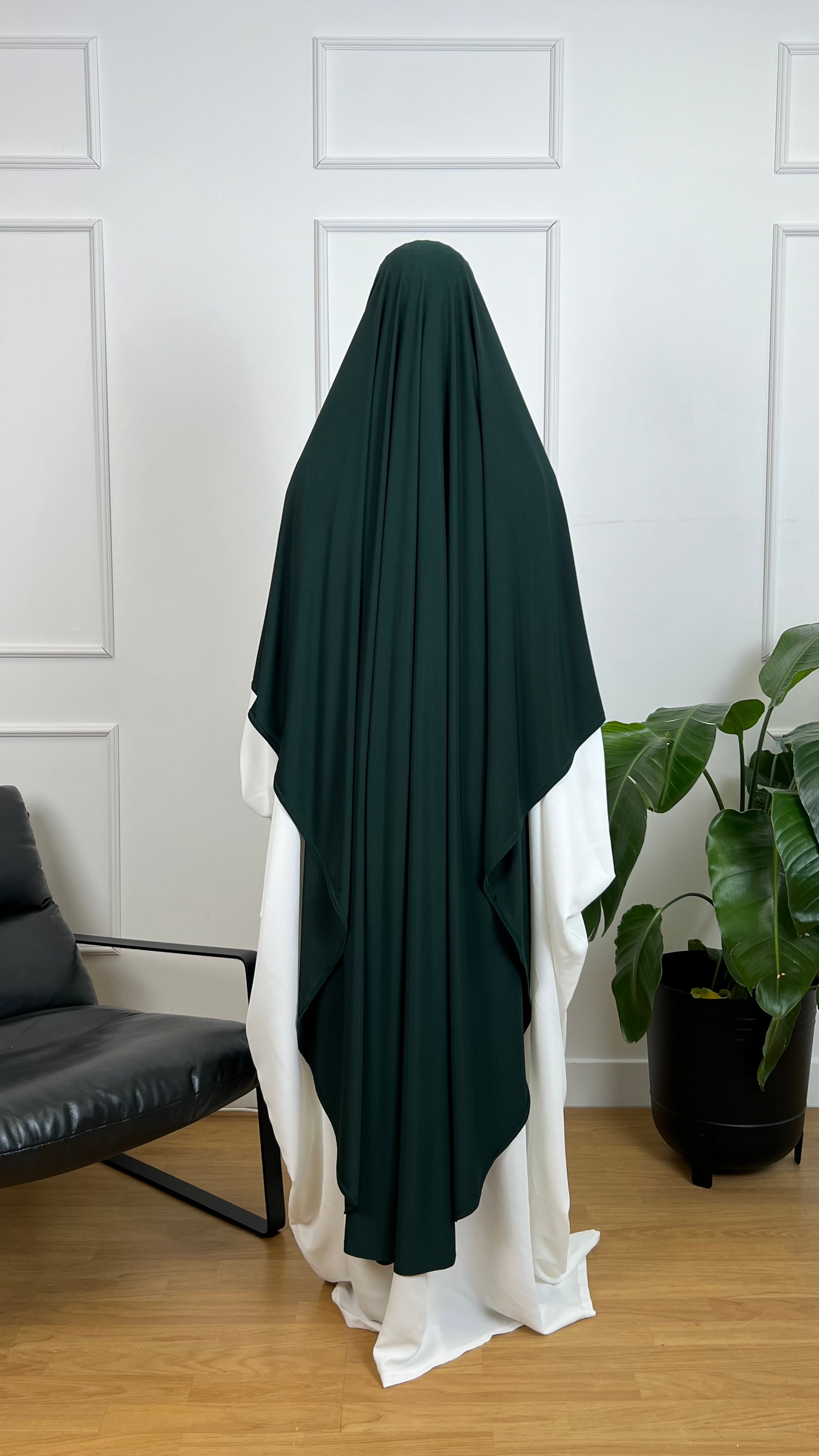 Découvrez notre Khimar en jersey premium d’une longueur de 1m50, spécialement conçu pour allier élégance et confort. Son tissu jersey premium, souple et doux, offre un tombé fluide et raffiné tout en garantissant une grande légèreté.