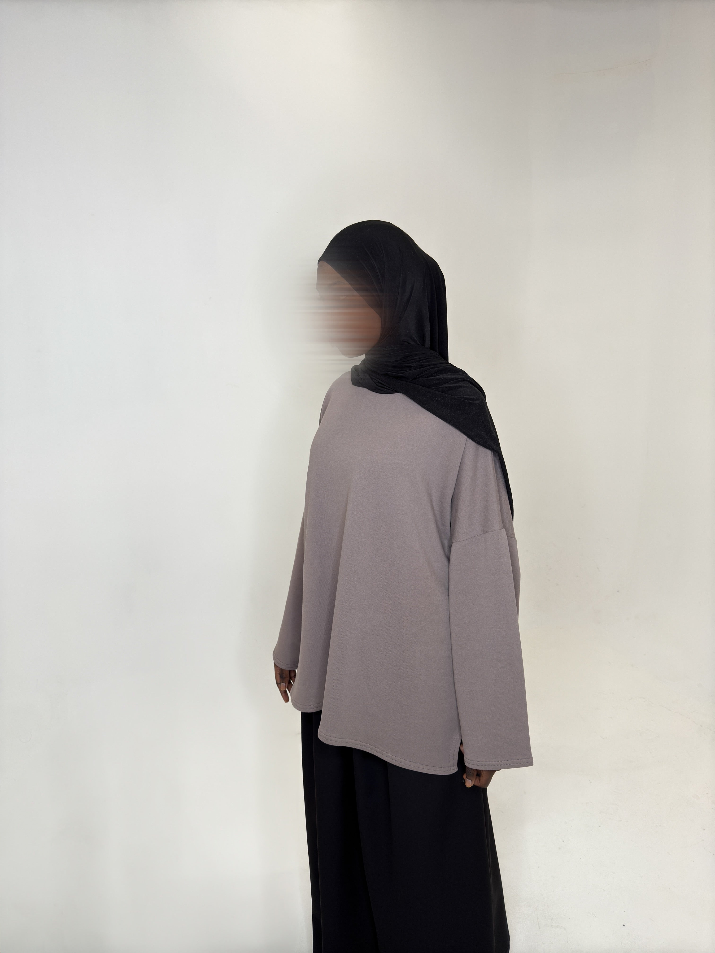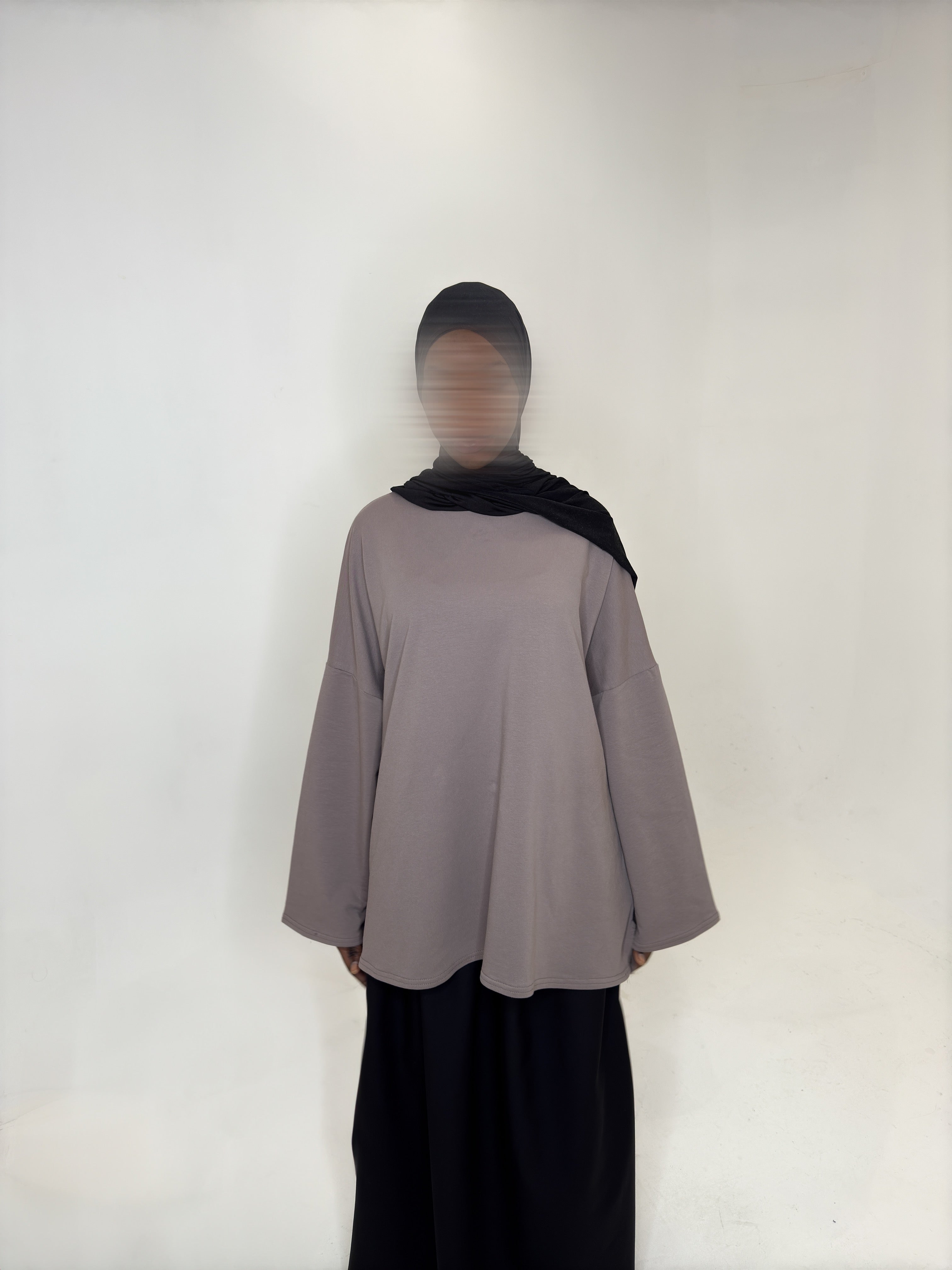 T shirt bien long bien oversize on est pas sur du 3/4 mais sur des vrais manches longues. Le t shirt est confortable 100% en coton. La couleur taupe est unique et fidèle à la photo. La livraison a été super rapide je recommande.