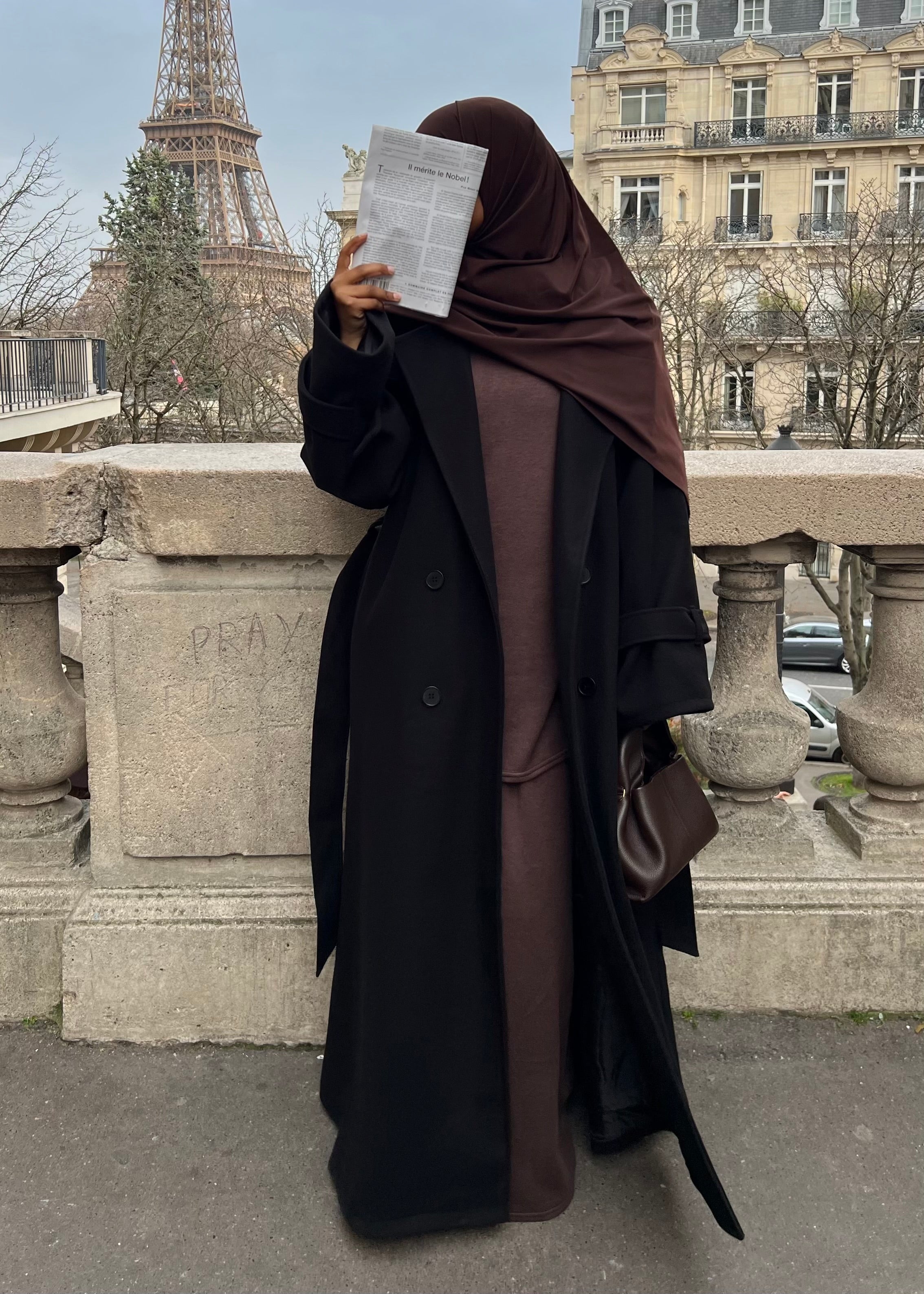 As salam aylekoum j’ai commandé le manteau noir et il est incroyable !! Longueur matière coupe , tout est parfait! Je pouvais pas rêver mieux pour un manteau , je fais 1m73 et depuis le temps que je cherche un manteau qui a une longueur cheville je suis ravie!! Cet hiver ça va être full Muslimina haha ! Mercii beaucoup qu الله fructifie ton commerce!