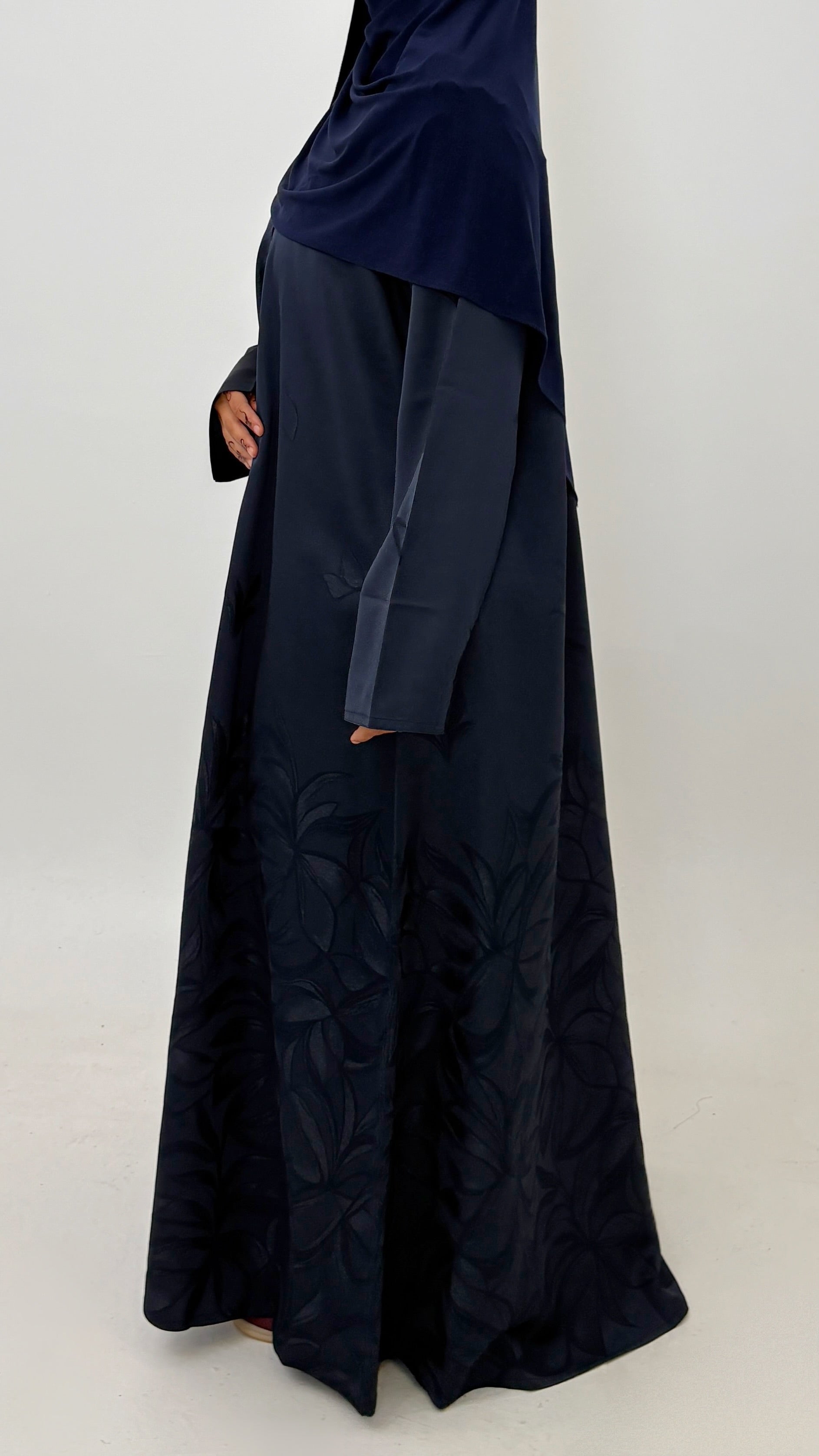 Une abaya fluide et élégante, sublimée par de délicats motifs floraux légèrement pailletés qui apportent une touche de lumière tout en restant très discrets. Sa coupe ample offre un tombé raffiné et un confort idéal pour les occasions spéciales comme l’Eïd.