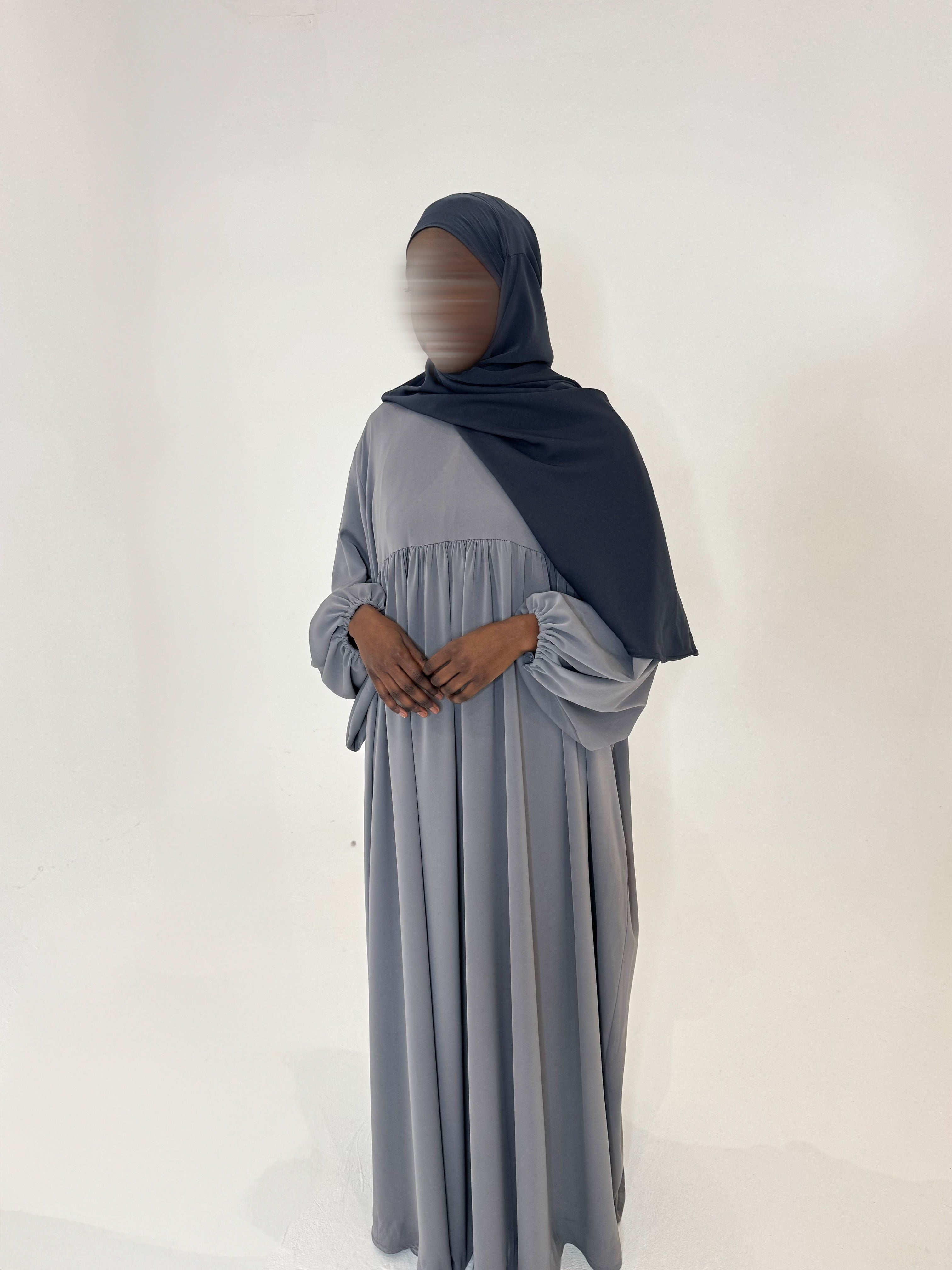 ABAYA MANCHES BOUFFANTES GRIS CLAIR