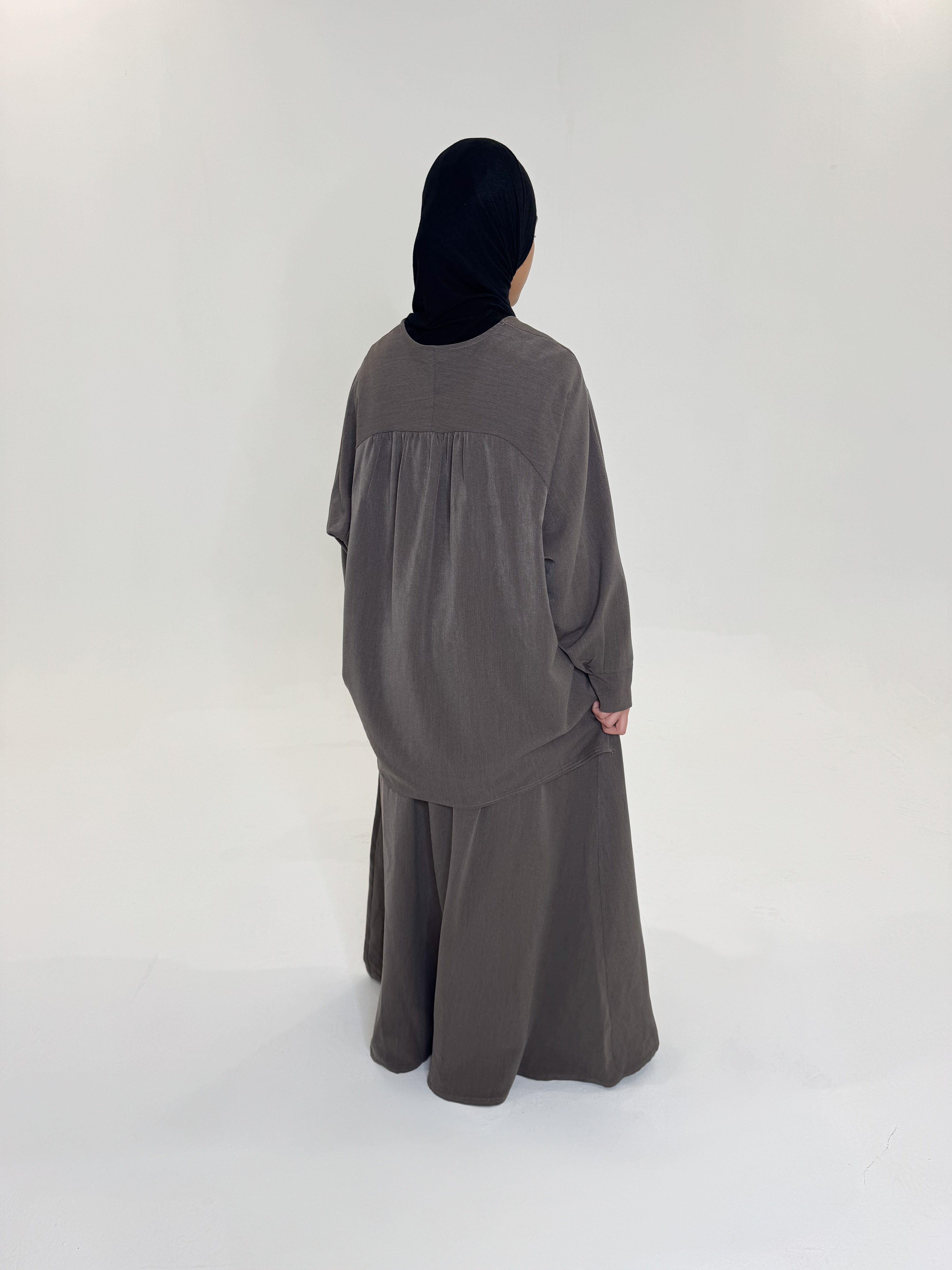 Découvrez notre ensemble plissé à l’arrière et en matière épaisse, conçu pour s'adapter à toutes les morphologies. Cet ensemble oversize allie confort et élégance, avec un tissu de qualité qui offre une belle tenue tout en restant agréable à porter.