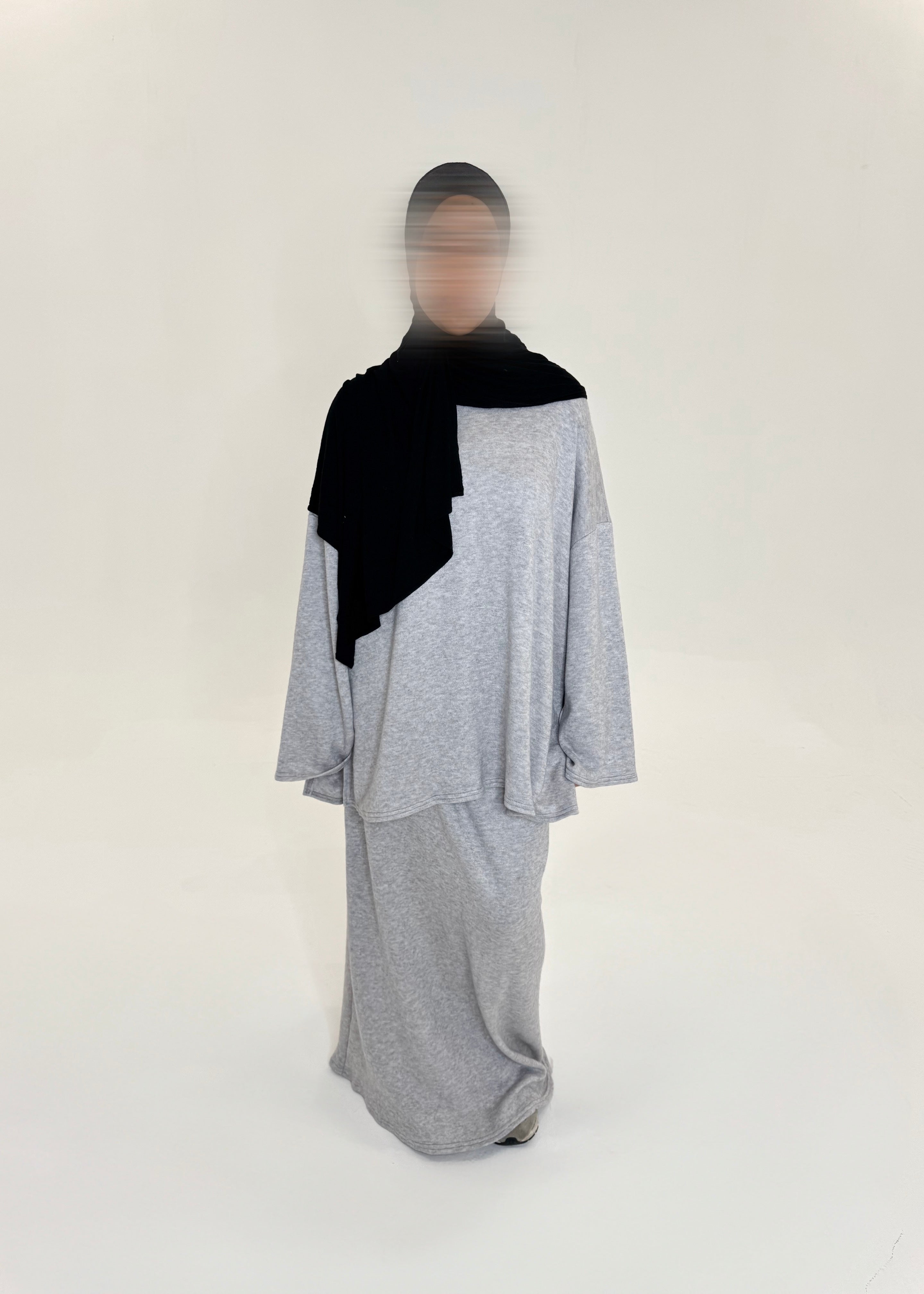 Découvrez notre création, le set Ayan, un ensemble élégant en pull façon cachemire. Composé d'une jupe coupe droite et d'un haut large avec fente, cet ensemble est conçu pour vous tenir chaud tout en offrant un confort optimal. Sa matière très douce vous enveloppe de chaleur, ce qui en fait le choix parfait pour les journées fraîches. Ajoutez une touche de sophistication à votre garde-robe avec le set Ayan, idéal pour un look à la fois décontracté et chic.