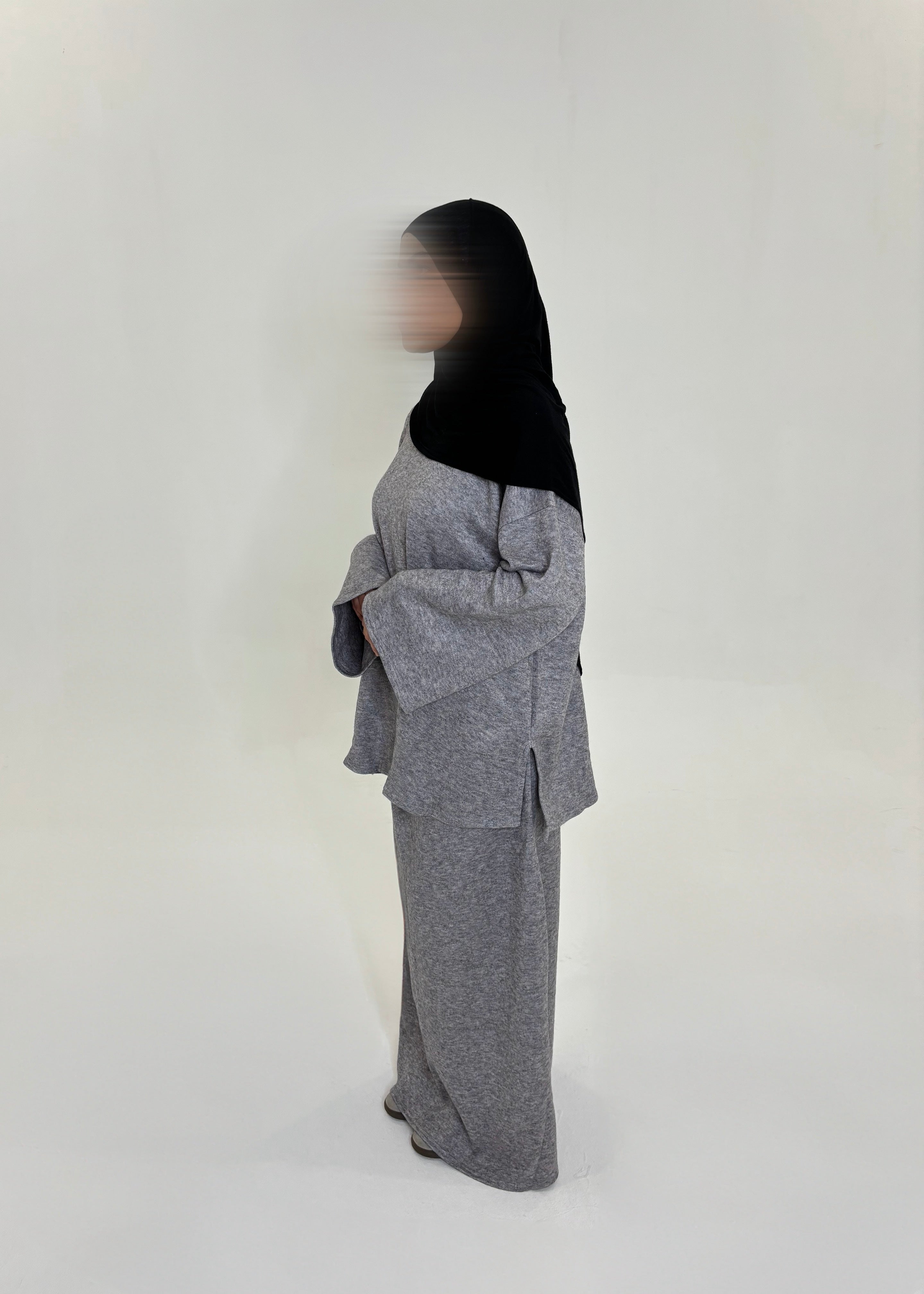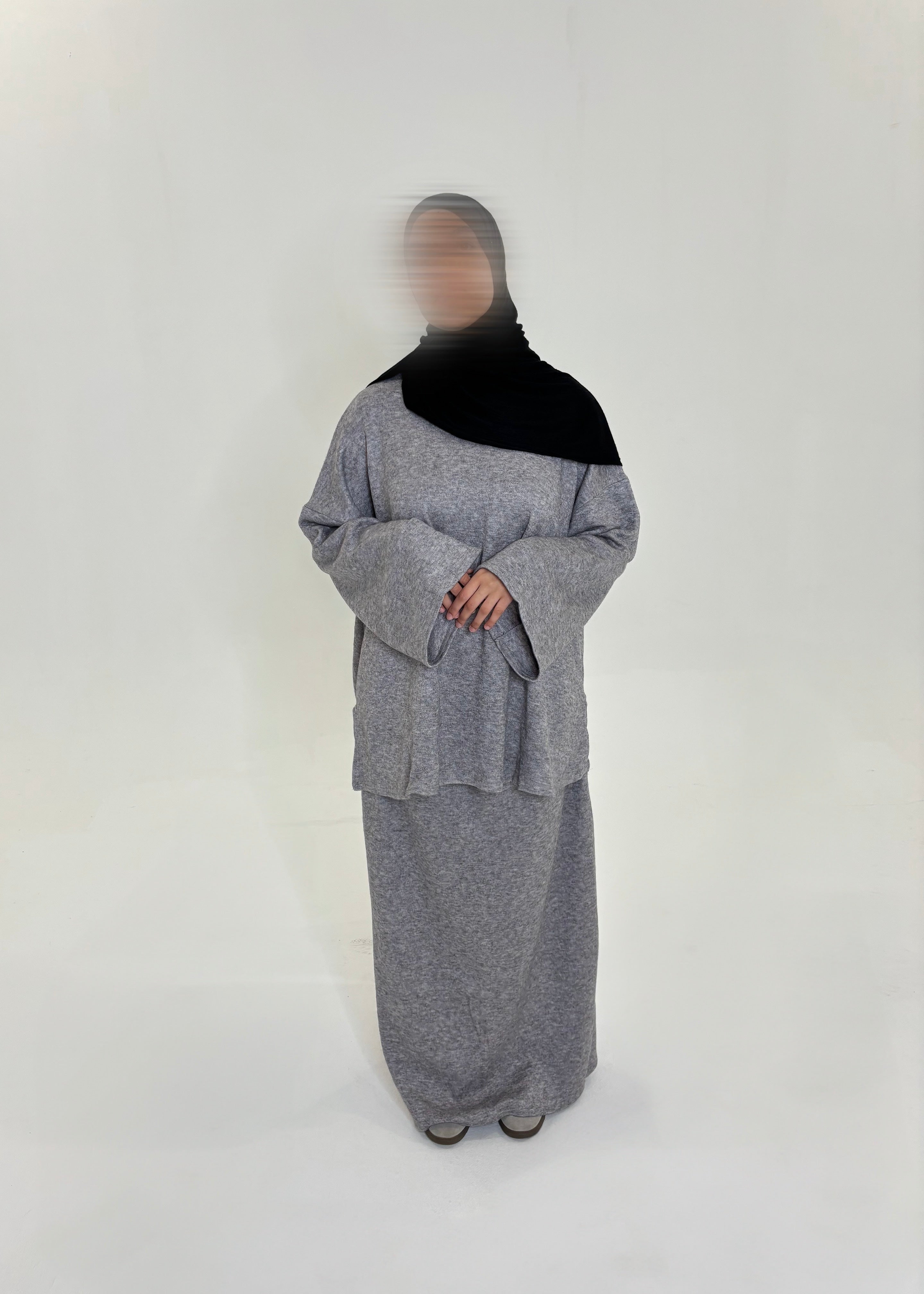 Découvrez notre création, le set Ayan, un ensemble élégant en pull façon cachemire. Composé d'une jupe coupe droite et d'un haut large avec fente, cet ensemble est conçu pour vous tenir chaud tout en offrant un confort optimal. Sa matière très douce vous enveloppe de chaleur, ce qui en fait le choix parfait pour les journées fraîches. Ajoutez une touche de sophistication à votre garde-robe avec le set Ayan, idéal pour un look à la fois décontracté et chic.
