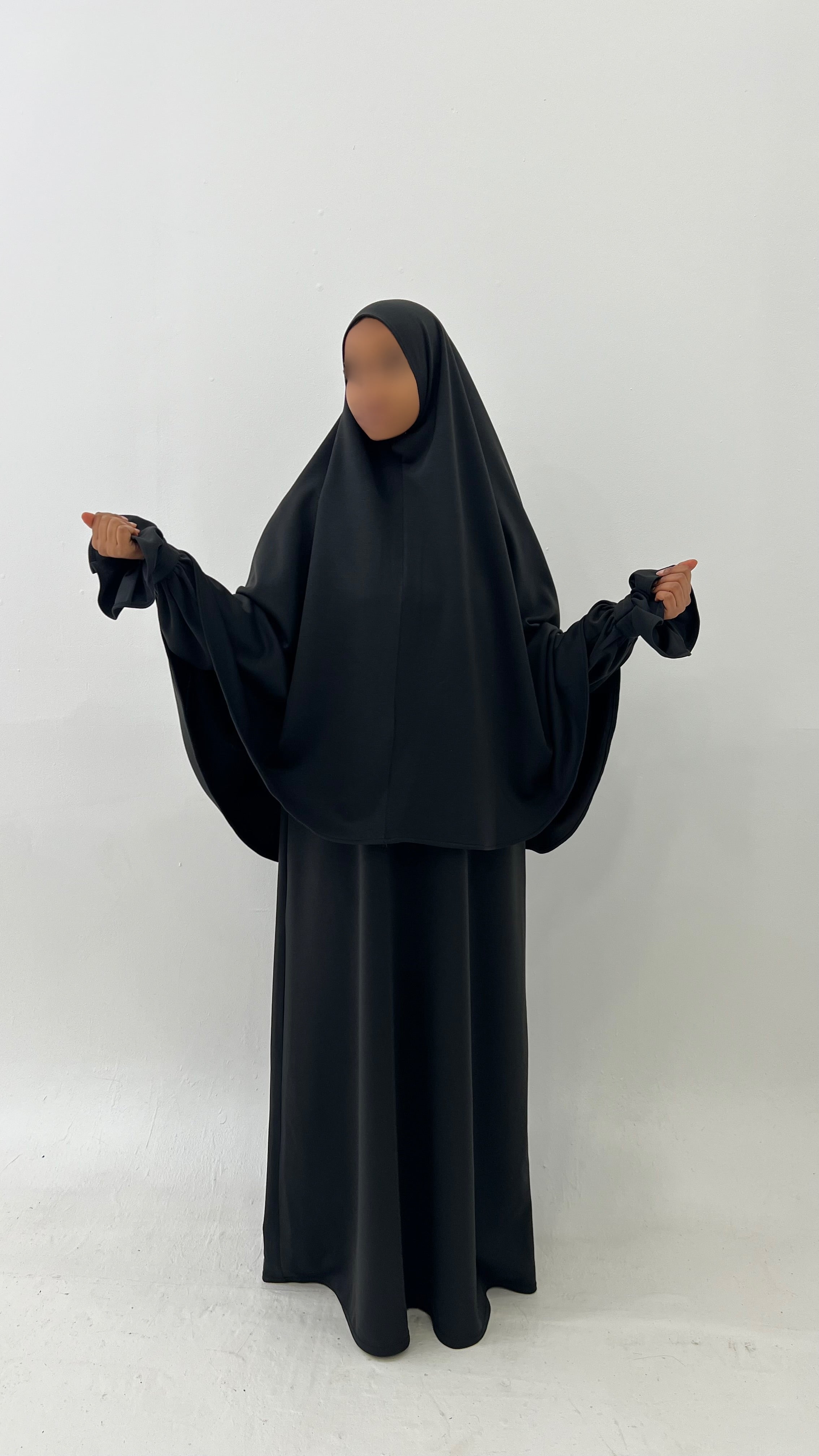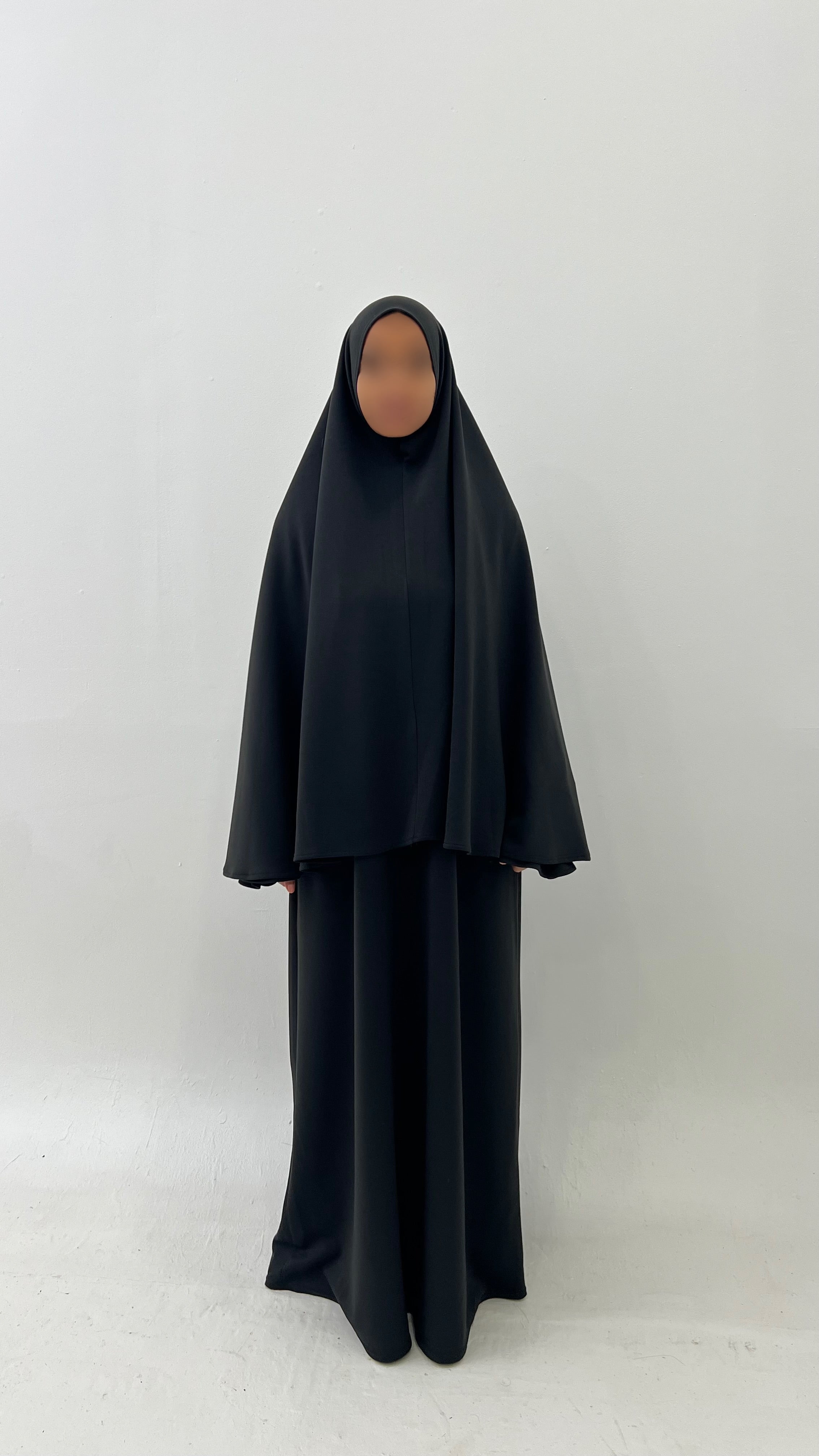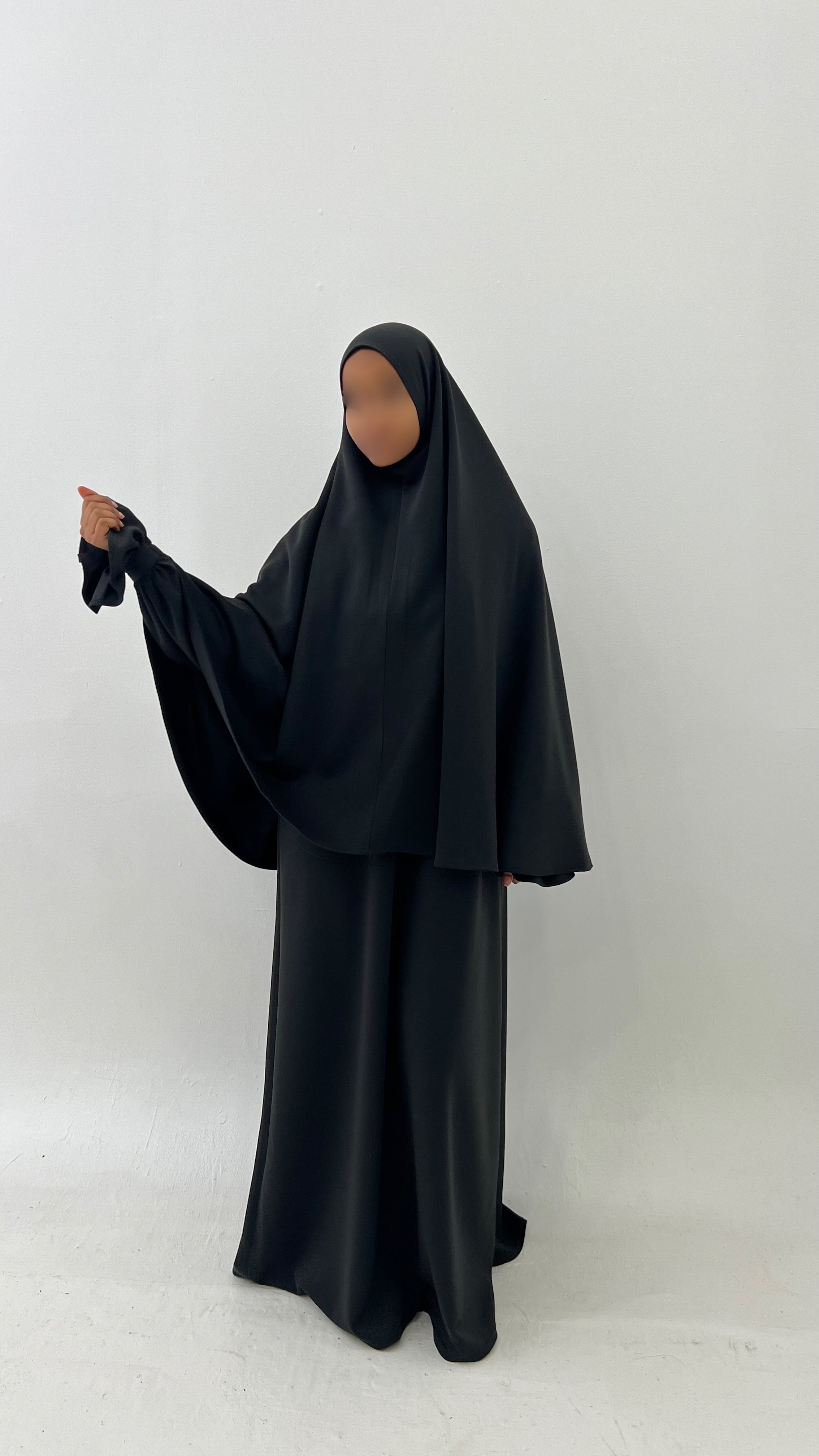 Ensemble Khimar à enfiler (se porte avec une épingle) en viscose, à la coupe fluide.