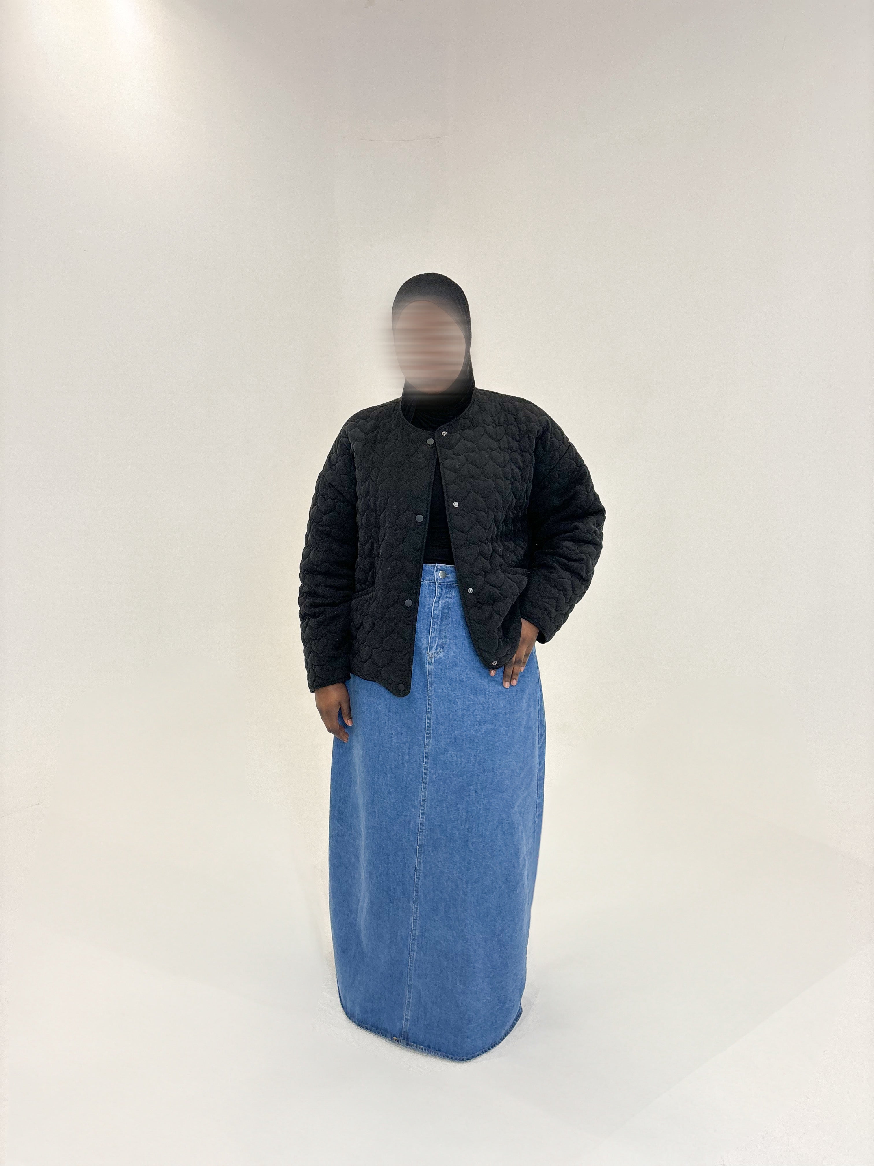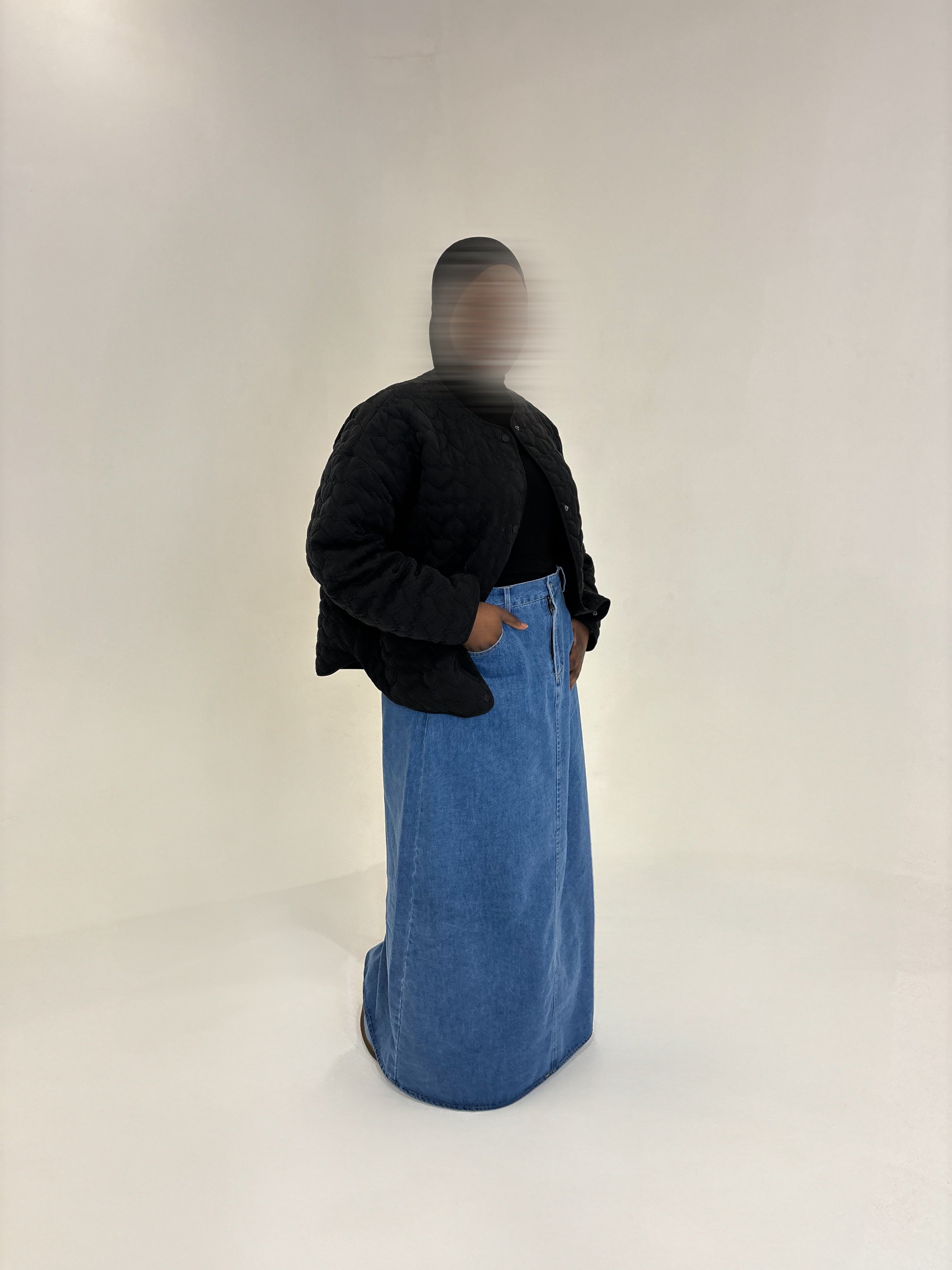 Découvrez notre jupe en jean longue, sans fente et évasée, parfaite pour un look à la fois décontracté et élégant. Sa coupe évasée flatte la silhouette tout en offrant un confort optimal. Les poches pratiques ajoutent une fonctionnalité appréciable pour y ranger vos essentiels. Grâce à l'élastique à l'arrière de la taille, cette jupe s'ajuste parfaitement à votre morphologie, vous garantissant un confort tout au long de la journée. Idéale pour toutes les occasions, elle deviendra rapidement un incontournable de votre garde-robe!
