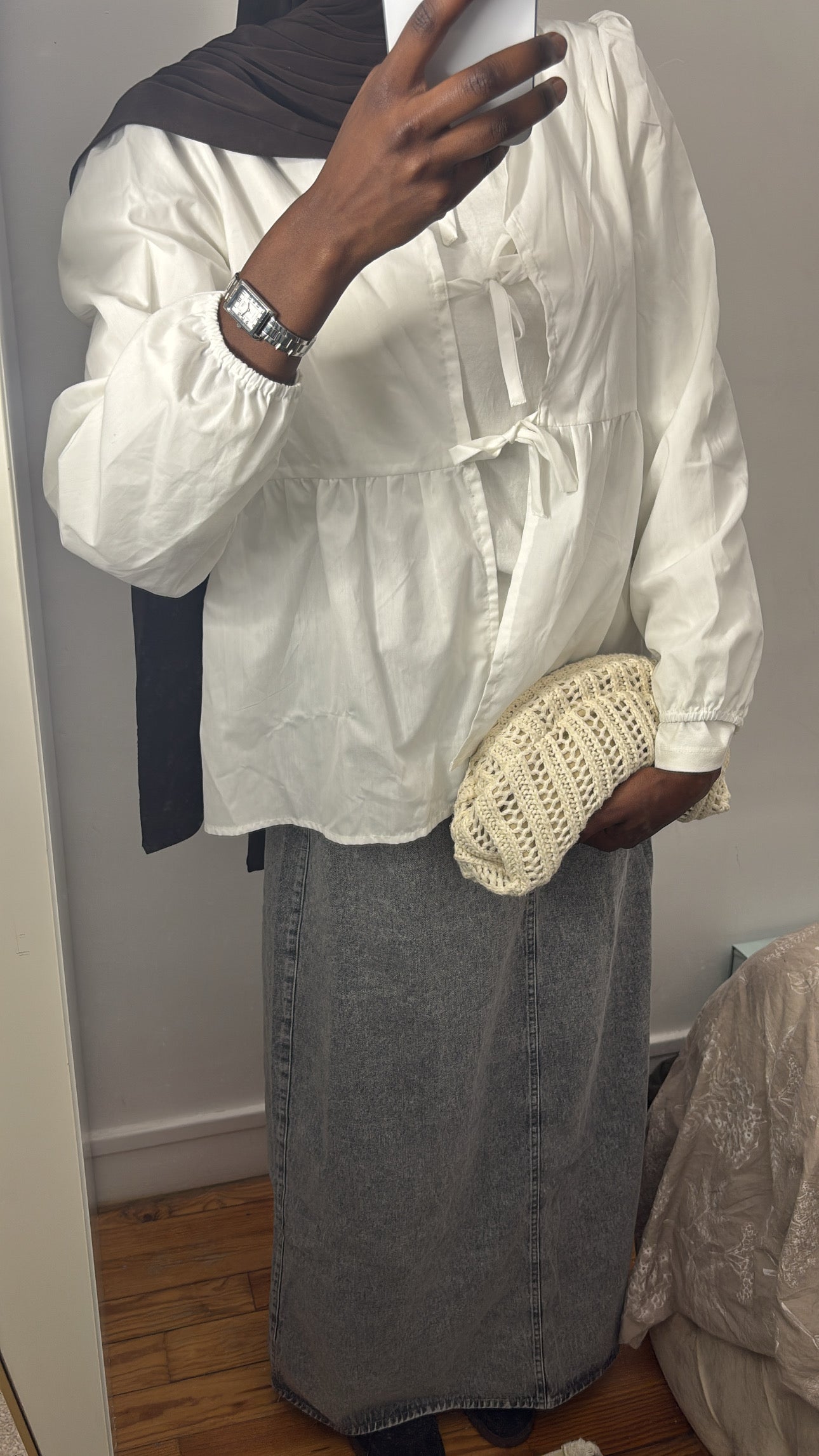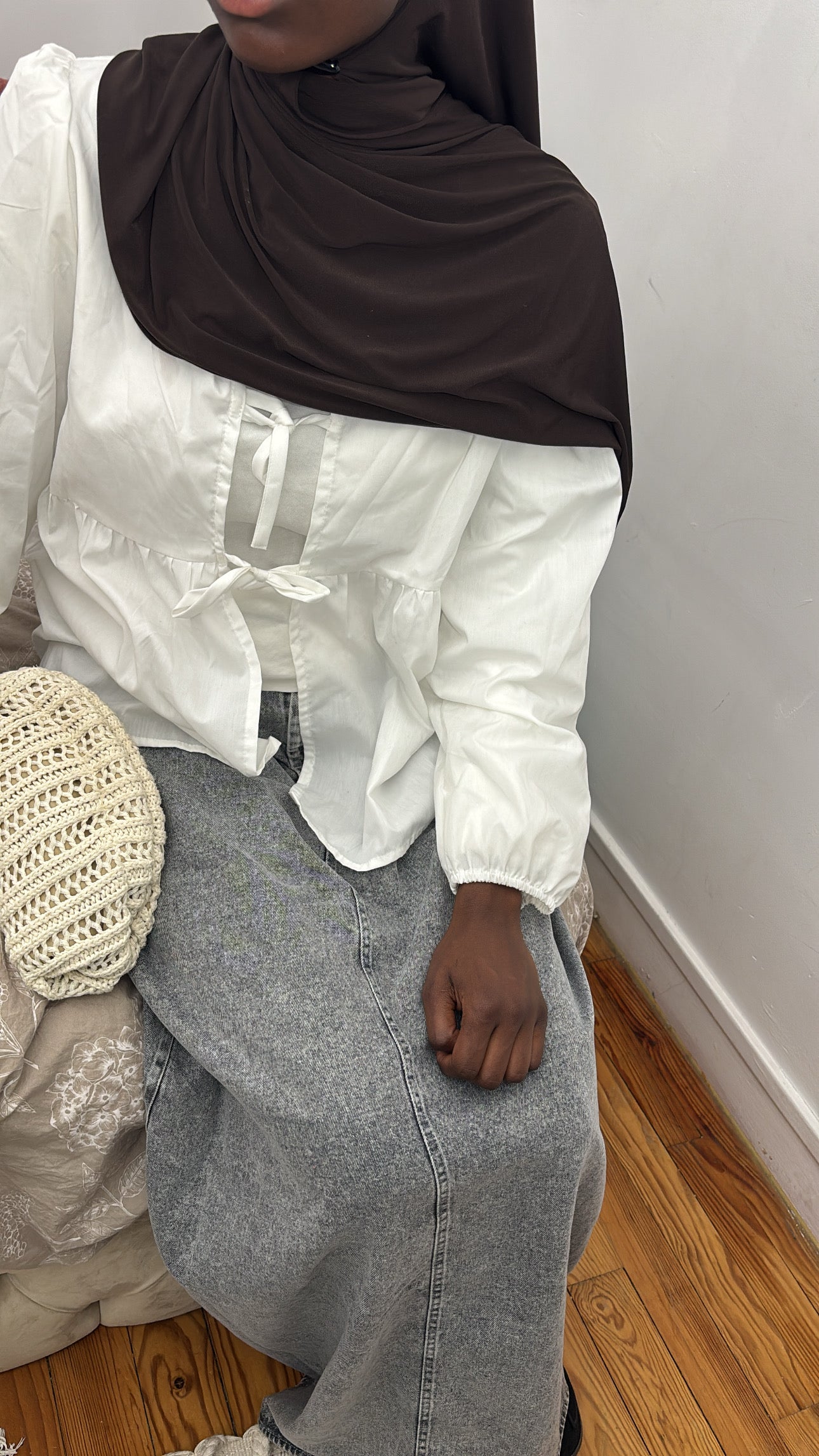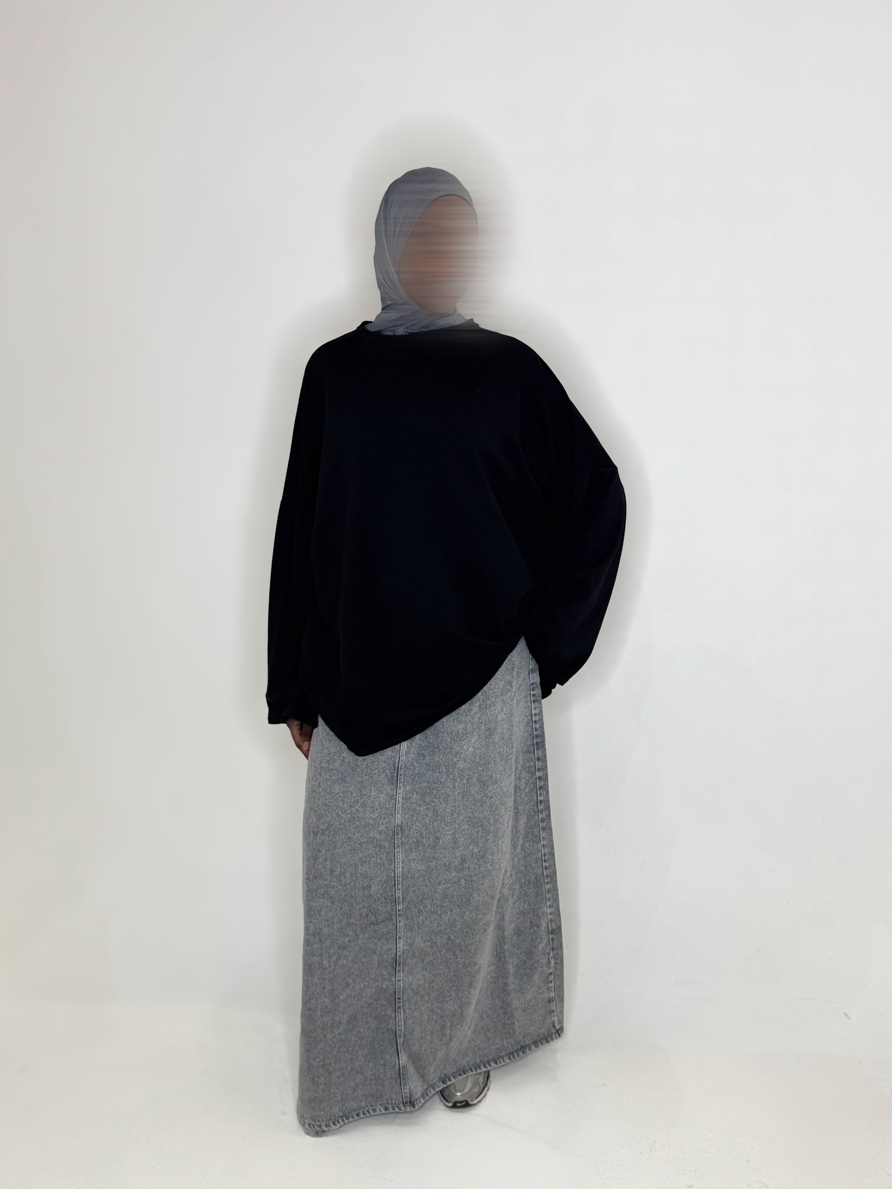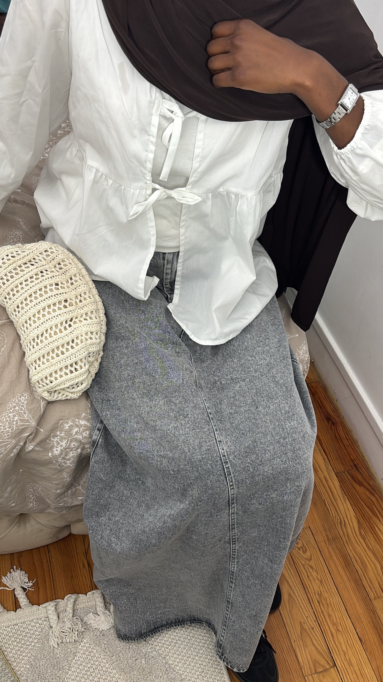 Découvrez notre jupe en jean longue, sans fente et évasée, parfaite pour un look à la fois décontracté et élégant. Sa coupe évasée flatte la silhouette tout en offrant un confort optimal. Les poches pratiques ajoutent une fonctionnalité appréciable pour y ranger vos essentiels. Grâce à l'élastique à l'arrière de la taille, cette jupe s'ajuste parfaitement à votre morphologie, vous garantissant un confort tout au long de la journée. Idéale pour toutes les occasions, elle deviendra rapidement un incontournable de votre garde-robe!