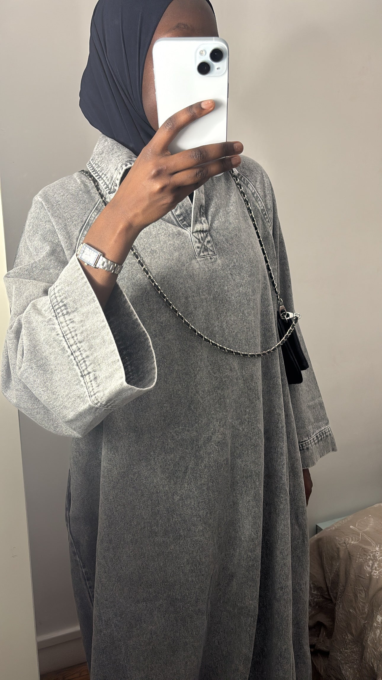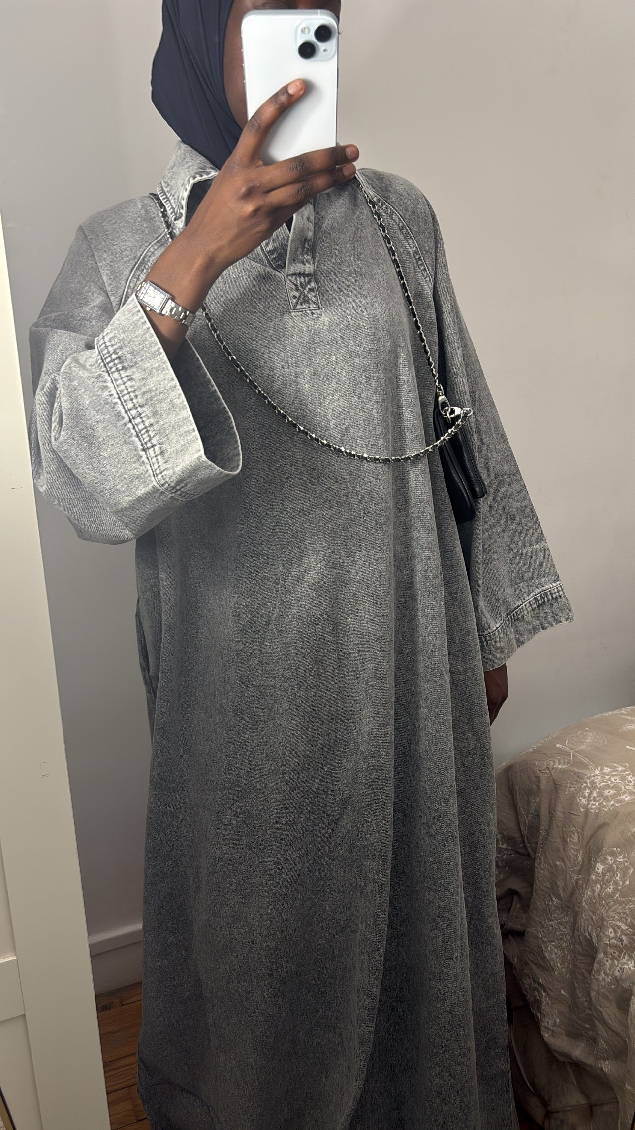 Découvrez notre robe en jean coupe oversize, alliant confort et élégance.